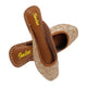 Beige dabu with intricate gold gotapatti leaves on leather mojari with sole cushioning.