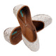 Black base with white paisley thread embroidery leather Mocassin cut mojari with sole cushioning.