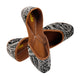 Black base with white  paisley thread embroiderey  Open leather mojari with sole cushioning.