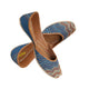 Black base with blue red chevron tanka work on mojari with sole cushioning.