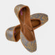 Blue block print  chevron  leather mojari with sole cushioning.