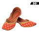 Block printed floral Jaal in blue and  white  leather mojari with Neon green thread hand embroidery and sole cushioning.