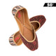 Grey stripe with rust brown dabu combo leather mojari with gold zari hand embroidery and sole cushioning.