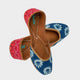 Indigo dyed top with pink circle combination leather mojari with copper zari hand embroidery and sole cushioning.