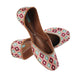 Ivory silk with blue, offwhite flowers and gold details and sole cushioning.