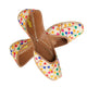 Beige silk with multi coloured tulips embroidered leather mojari with sole cushioning.