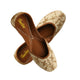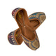 Block printed floral jaal in orange with orange motif leather mojari with gold zari hand embroidery and sole cushioning.