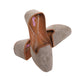 Rust Dabu patches attached with hand embroidery in dual tone thread on leather mojari with  sole cushioning