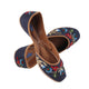 Navy Blue silk with gold dori sequin work jutti with leather trims and sole cushioning.