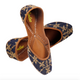 Navy blue suede with spiral roses embroidered with zardosi embroidery on mojari and sole cushioning.