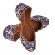 Teal silk leather moccasin jutti with intricate pittan embroidery and sole cushioning